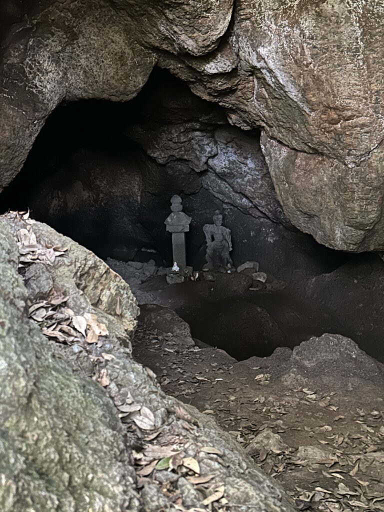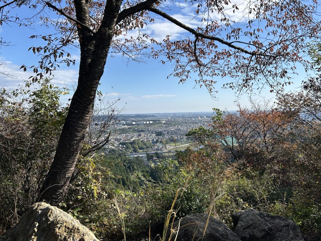 貴志嶋神社で今回の山行の安全を祈り、その後室町時代に作られた大黒天像が安置されている弁天洞窟を見学。そして最初の山頂、弁天山に。あきる野市街地や遠くに埼玉の高層ビルもよく見えました。