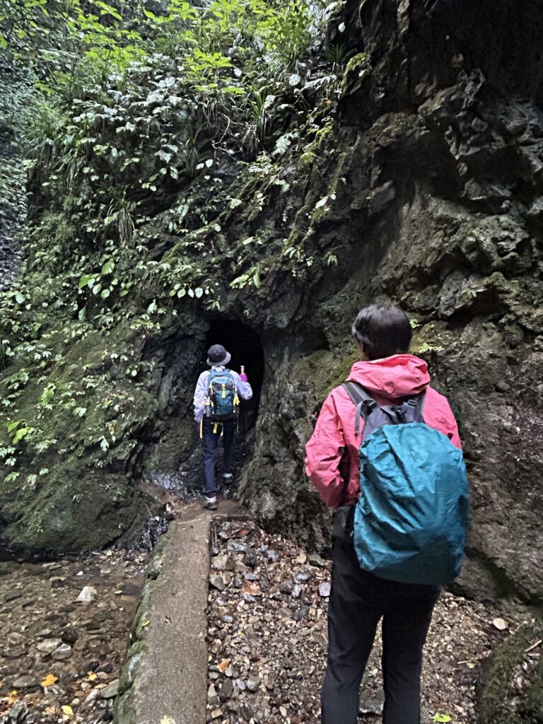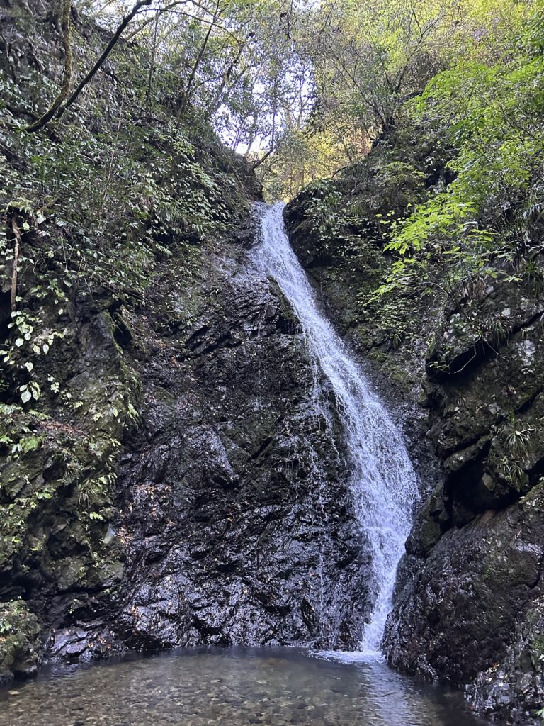 小峰公園の脇の道をひたすら登り最高地点へ。そこは公園内らしいのですが、弁天山や城山より標高が高く336メートルでした。それから滝方向へ。前を歩く2人組のおばさまたちについていくと、滝の横のトンネルに入っていきます。水が流れるトンネルを抜けるとそこにも滝が。彼女たちがいなければ、最初の滝で引き返していました。
