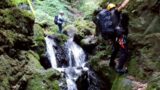 小峰公園の脇の道をひたすら登り最高地点へ。そこは公園内らしいのですが、弁天山や城山より標高が高く336メートルでした。それから滝方向へ。前を歩く2人組のおばさまたちについていくと、滝の横のトンネルに入っていきます。水が流れるトンネルを抜けるとそこにも滝が。彼女たちがいなければ、最初の滝で引き返していました。