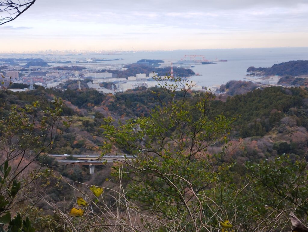 電波塔が近づくと一等三角点のある下二子山に着き、展望台からはランドマークタワーやスカイツリーも見えました。そこから先の上二子山も阿部倉山も樹林の中で、下山は大久保バス停でしたが、便が無いので長柄交差点まで歩いて、京急逗子・葉山駅から帰りました。休憩入れて約6時間程でした。