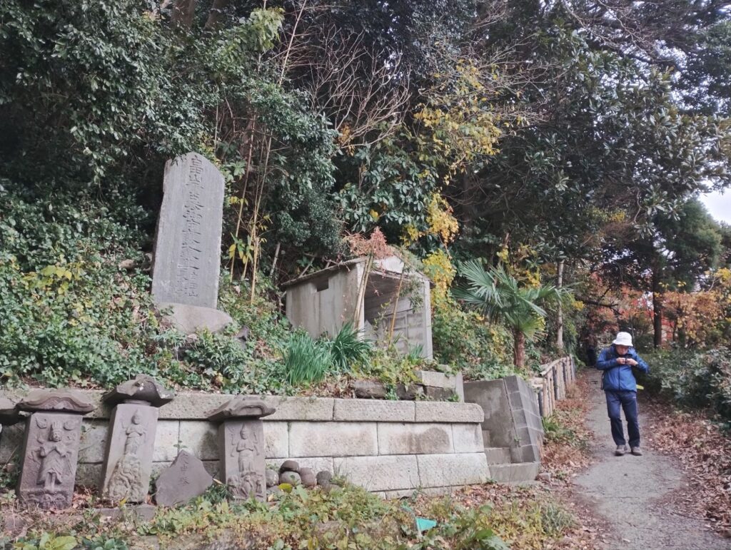 三浦按針夫妻の墓を通り、田浦方面へ進み、北消防署・長-19の杭から小路に入ます。沢沿いを歩き、小橋を渡り横浜横須賀道のトンネルを2つ通り抜け、側溝沿いに進み網階段を登リ畠山方面へ向かいます。