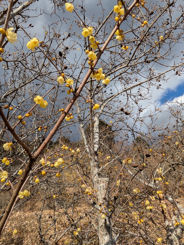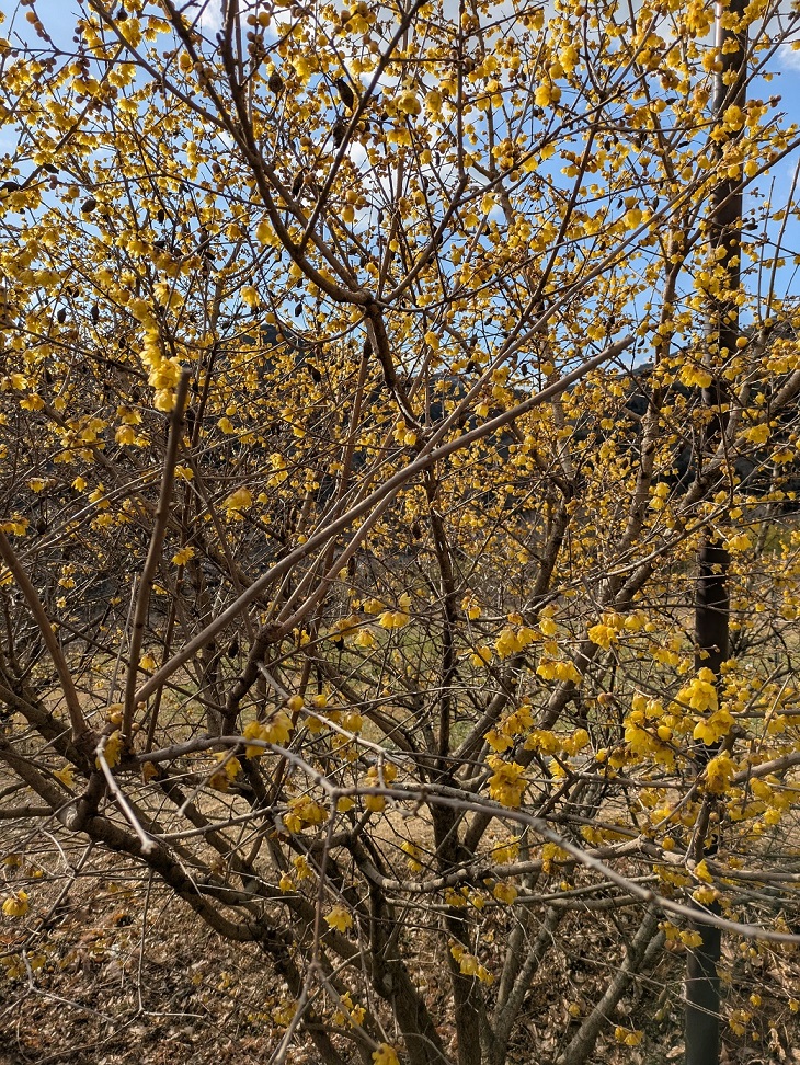 下山してからは、ロウバイ祭り(入場料\500)に無料バスで行きました。最近は春の訪れとして各地でロウバイの木を植えているように思います。
