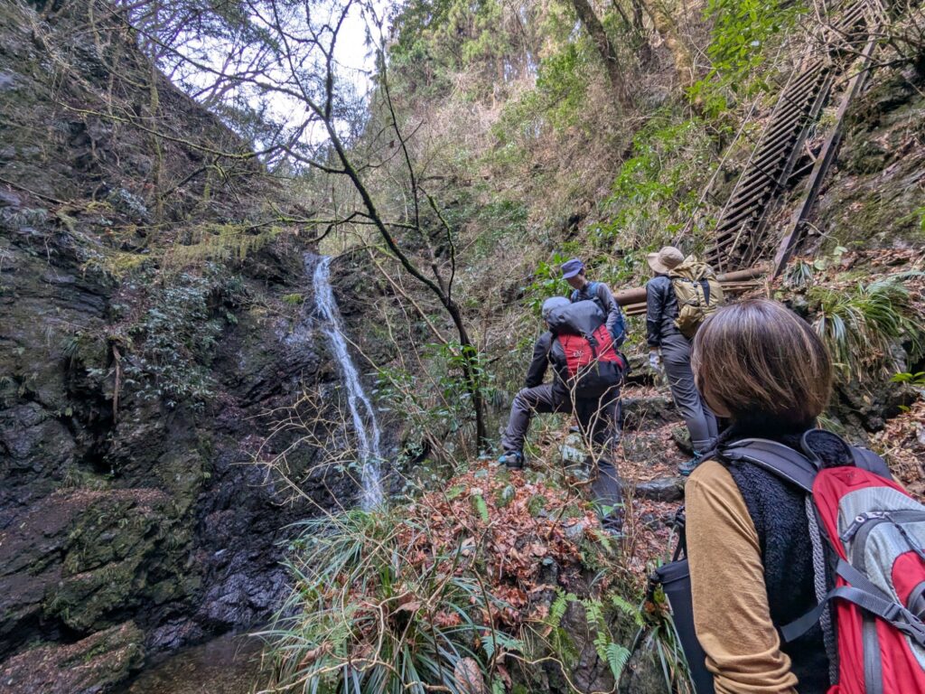 急な階段がたくさん出てきて大変でしたが、神社や滝、石に書いてあるお地蔵さま、梅やアセビなど、春の空気を楽しみました。